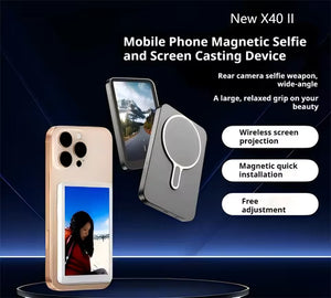 Ultra Magnetic Selfie Screen (Bluetooth Audio Version) – A 5-in-1 portable vlogging accessory that combines magnetic phone mounting, wireless screen sharing, and Bluetooth audio for seamless selfie shooting and video content creation.